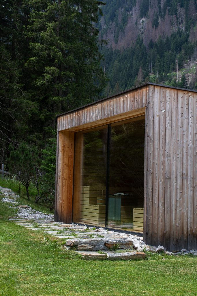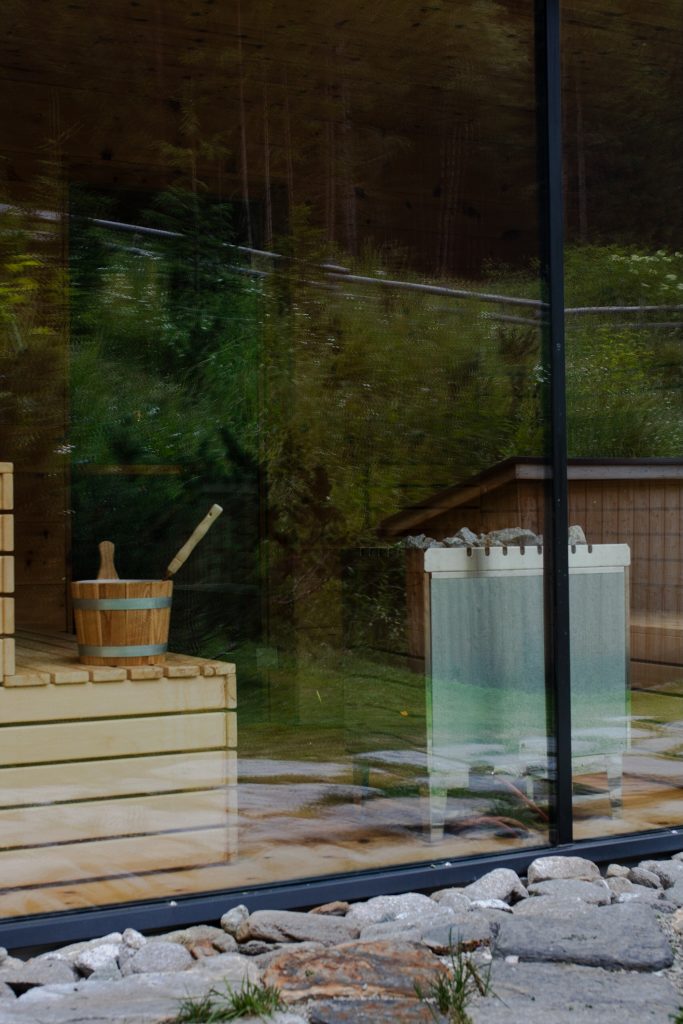 Wer absolute Ruhe sucht, findet sie 2,5 Kilometer oberhalb der Lodges. Dort liegen die 2020 erbauten Tenne Chalets, unauffällig eingebettet in den Wald. Das Holzhaus ist geteilt in vier Apartments: Mit jeweils zwei Schlafzimmern, Kaminofen und viel Privatsphäre bieten auf 40 Quadratmetern Platz für Paare oder Familien. Am Anreisetag wartet ein gefüllter Kühlschrank mit Südtiroler Delikatessen. Frühstück oder Abendessen können auf Wunsch geliefert werden – oder man speist abends in den Tenne Lodges. Highlight sind Sauna, Hotpot-Jacuzzi und zwei Ruheräume mit Glasfront direkt in den Wald. „Die Chalets sind für Menschen gedacht, die tiefe Ruhe suchen, die Luxus genießen möchten, aber nicht unbedingt den Kontakt mit anderen Gästen. Hier kann man Digital Detox pur erleben – inmitten der Natur, ganz für sich.“ Ob Tenne Lodges oder Chalets – inmitten der Natur gelegen laden sie dazu ein, die Ruhe der Berge mit nach Hause zu nehmen.