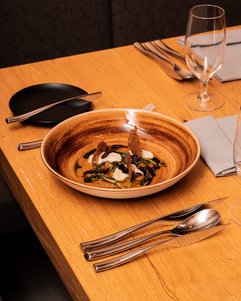 In der Küche legt Chefkoch Mike Bräutigam größten Wert auf Regionalität – und bringt Erfahrung aus der Sterneküche mit, unter anderem von Heinz Beck in Rom. Gemüse liefert Biobauer Thomas Zössmayr, Milchprodukte stammen vom Milchhof Sterzing, Wild wie Hirsch und Reh kommt ausschließlich von heimischen Jägern. Die Kräuter für das Abendmenü sammelt der Küchenchef auch schon mal selbst auf der Wiese gegenüber. Zu Trinken gibt es neben Bergwasser der hauseigenen Quelle auch naturtrüben Apfelsaft von Südtiroler Bauern und eine beeindruckende Weinauswahl mit über 500 Etiketten und besonderen Südtiroler Tropfen. Das Dinner ist als frei wählbares Menü mit einer Auswahl an leichten, exquisiten Gängen und vegetarischen sowie veganen Optionen. Auch das Frühstück lässt zwischen saisonalen Früchten und Variationen mit Eiern vom Familienbetrieb Marginterhof in Pflersch keine Wünsche offen.